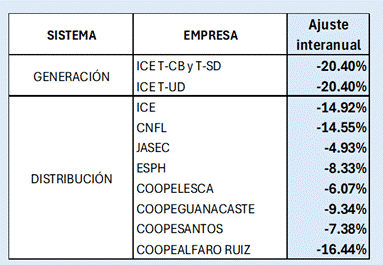 Estas tarifas consolidan el efecto de cuatro estudios previos: al Instituto Costarricense de Electricidad (ICE), Compañía Nacional de Fuerza y Luz (CNFL), el estudio extraordinario de distribución y el Costo Variable de Generación (CVG) que incluye el gasto en generación térmica y las importaciones/exportaciones de energía.