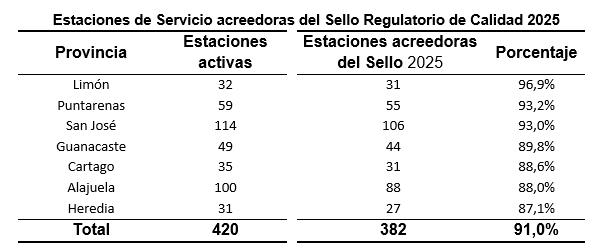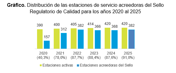 Al finalizar el 2025 se mantenían 420 estaciones activas en el país, por lo que por primera vez se supera el 90% de estaciones galardonadas con este reconocimiento al buen desempeño regulatorio.