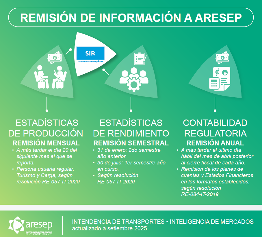 La información regulatoria es la que debe entregar el operador del servicio con el fin de conocer los datos estadísticos, contables e inversión sobre el servicio tren.